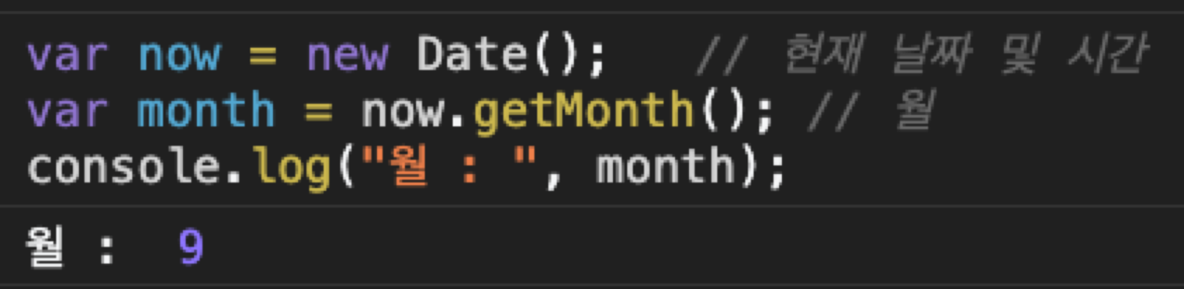 단, getMonth()로 월을 구하면 원래 월의 -1 된 값이 나옵니다.