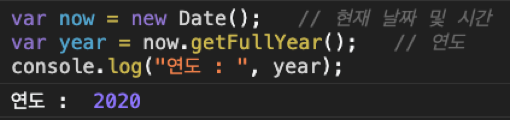Date 객체의 getFullYear() 를 사용하면 연도를 구할 수 있습니다.