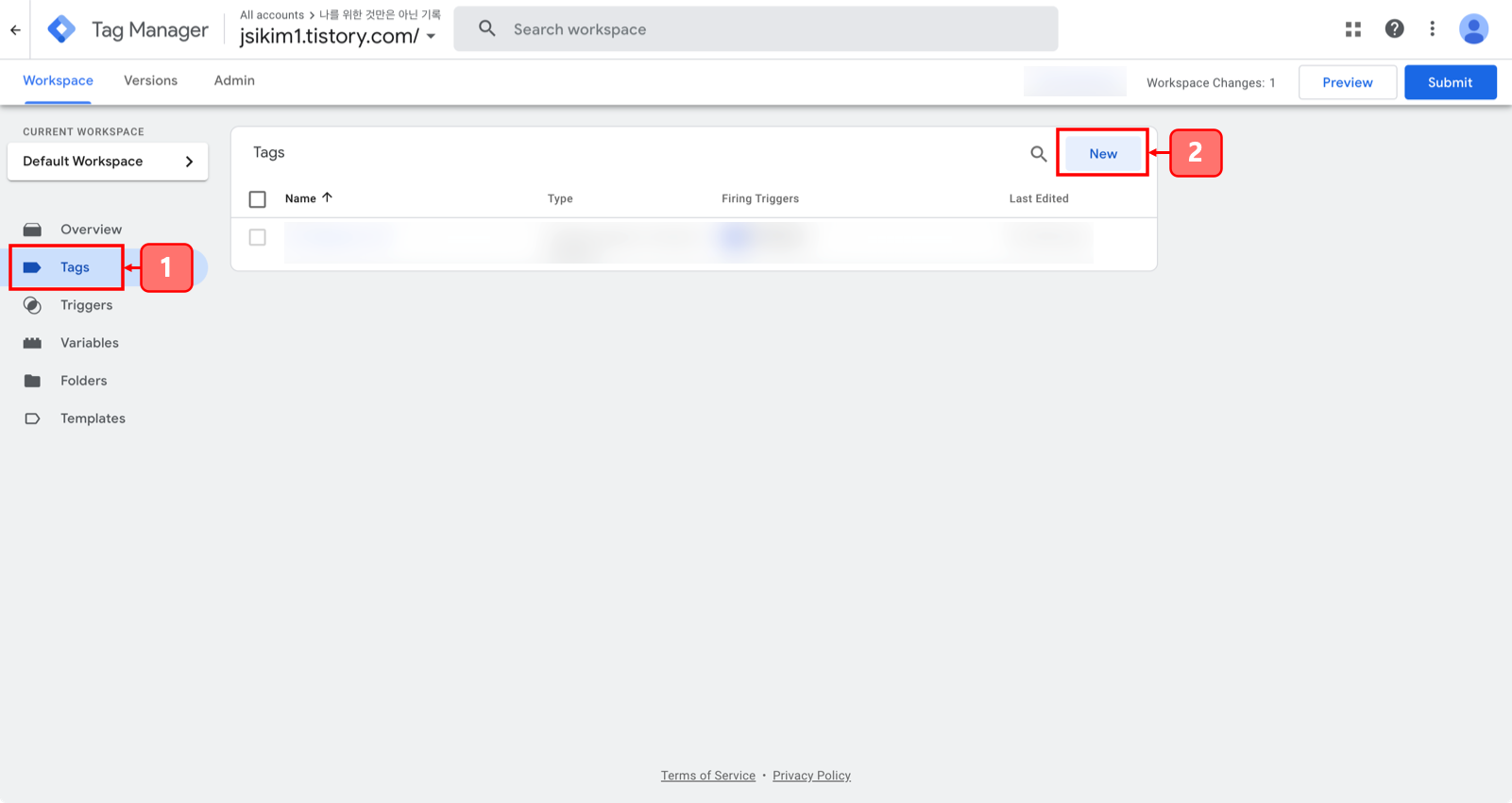 Tag로 들어가 New 버튼을 클릭해서 새로운 Tag 만들기를 시작합니다.