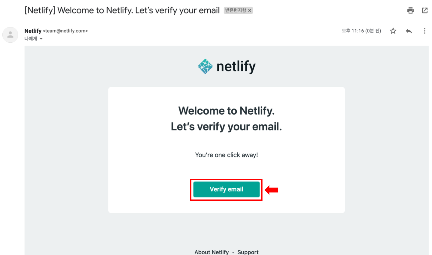 이메일 인증을 마치면 netlify로 이동 됩니다.