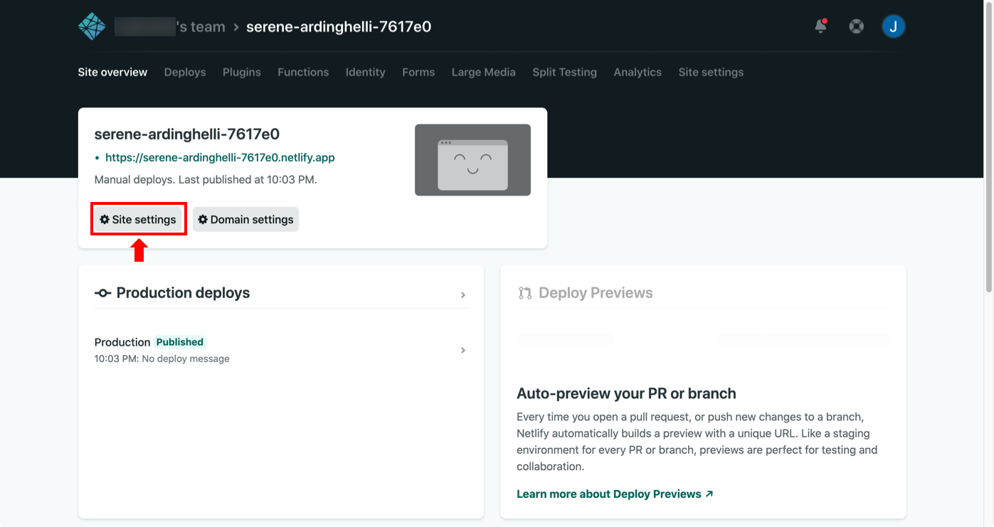 자신의 Site overview에서 Site settings 버튼을 클릭합니다.