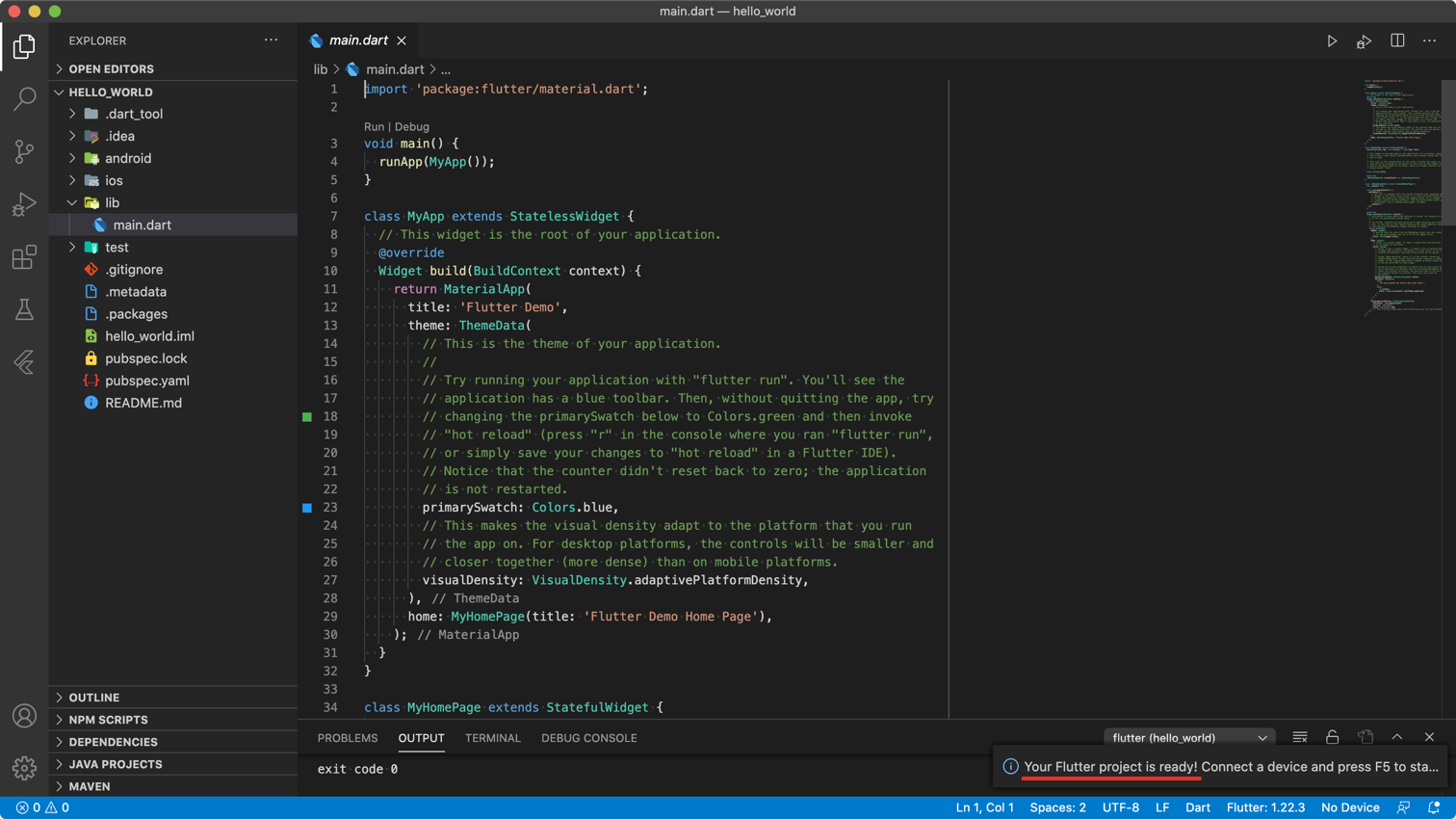 잠시만 기다려주시면 Flutter 개발을 위한 기본 세팅이 모두 완료된 프로젝트가 만들어집니다.