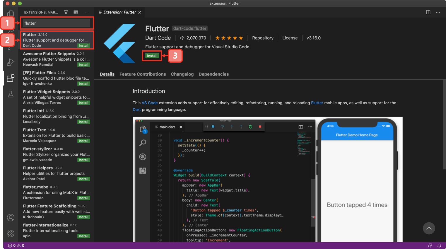 Dart Extension은 따로 설치할 필요 없이 Flutter Extensions을 설치하시면 함께 설치됩니다.