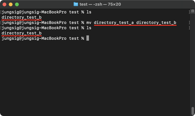를 입력하여 test_a.txt 파일명을 test_b.txt 로 변경하실 수 있습니다.