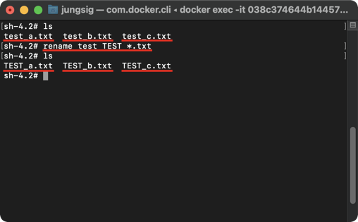 파일명 중 "test" 문자열을 "TEST"로 모두 변경할 수 있습니다.