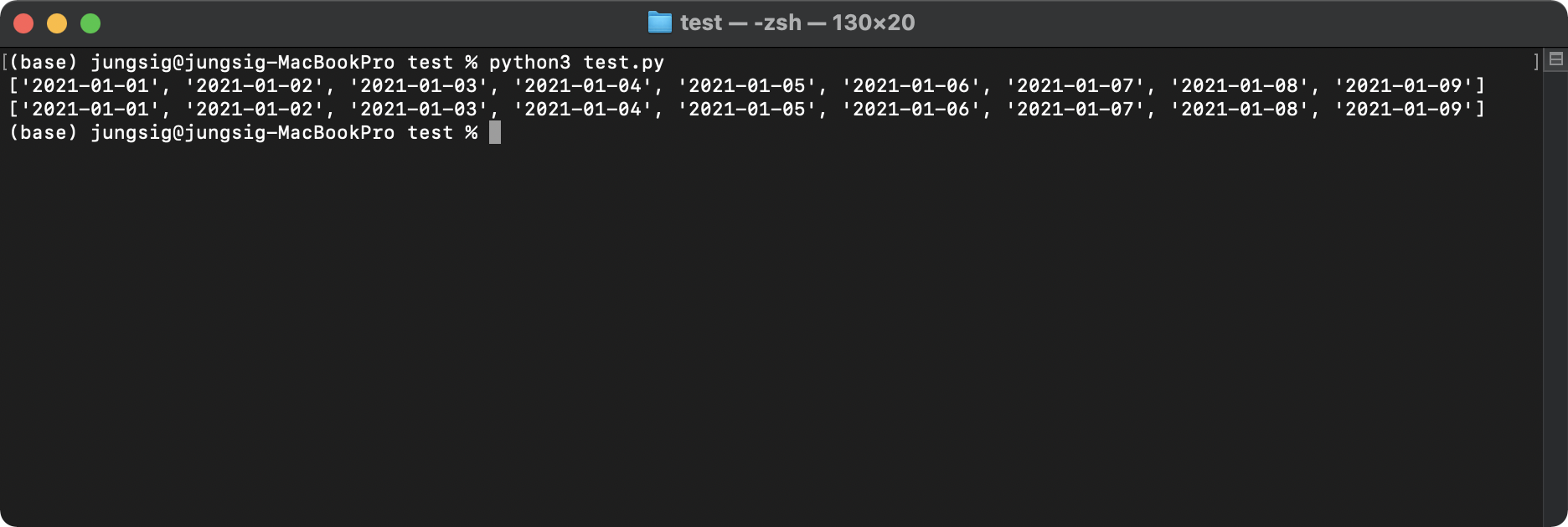 # ['2021-01-01', '2021-01-02', '2021-01-03', '2021-01-04', '2021-01-05', '2021-01-06', '2021-01-07', '2021-01-08', '2021-01-09']