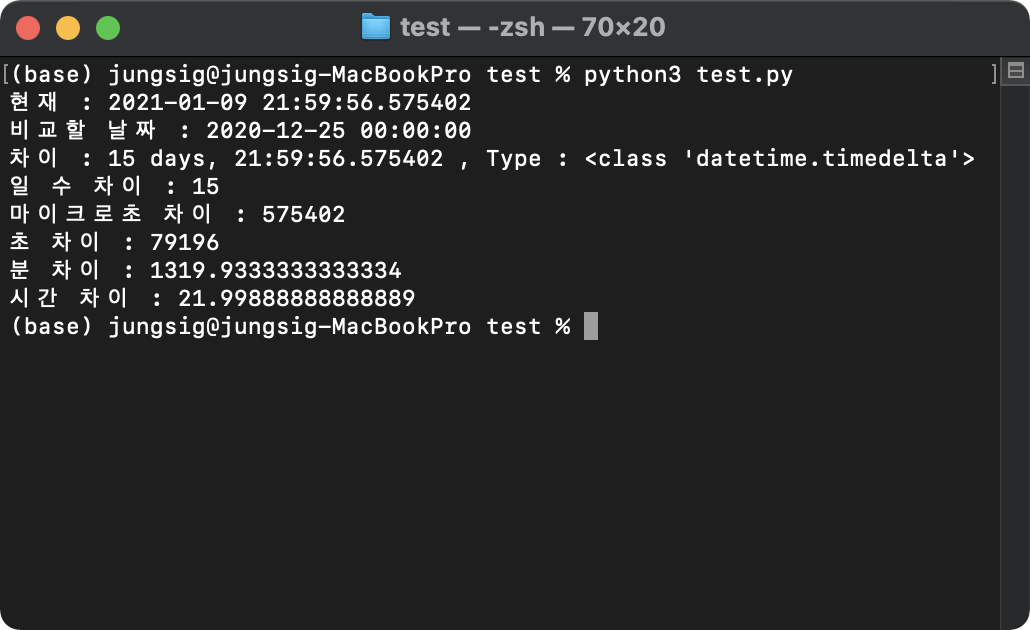 print("시간 차이 :", date_diff.seconds / 3600) # 시간 차이 : 21.859166666666667