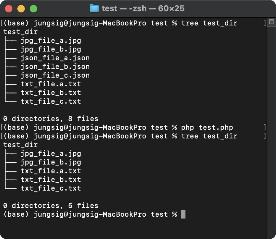 위와 같이 실제로 입력한 확장자의 파일만 모두 삭제된 것을 확인하실 수 있습니다.