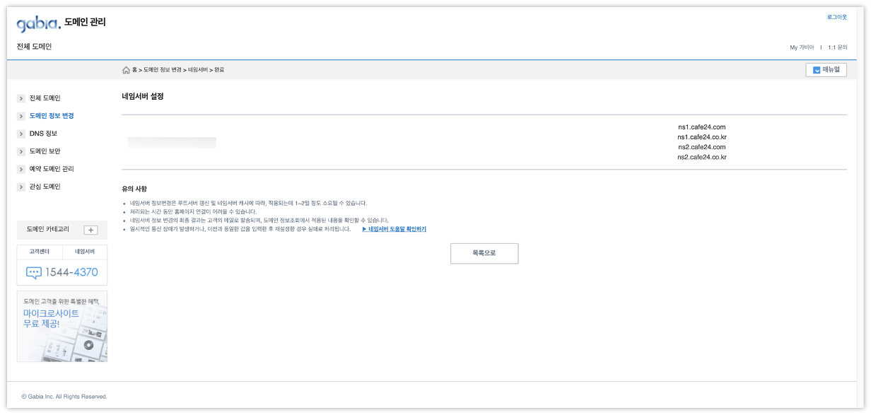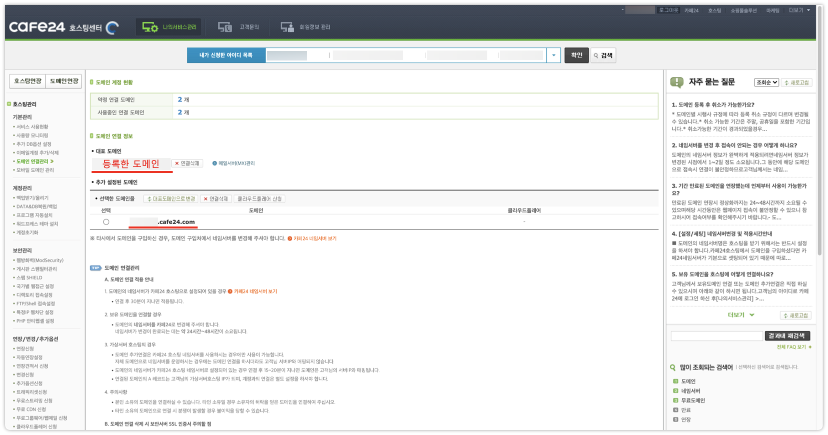 이상으로 가비아에서 구입한 도메인을 카페24 호스팅으로 연결하는 방법에대한 설명을 마치도록 하겠습니다.