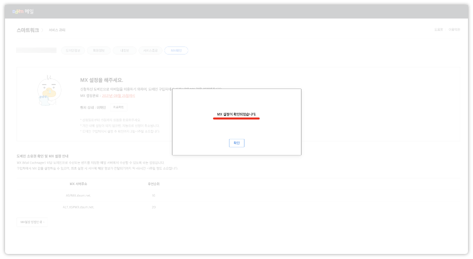 2. MX 서버주소 설정