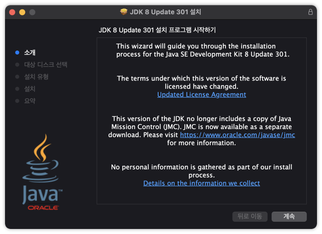 pkg 파일을 실행시키면 JDK 설치 프로그램이 시작됩니다.