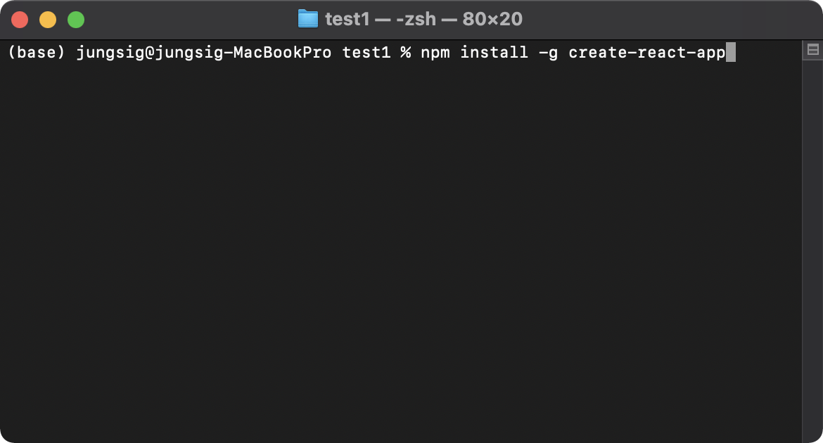 위 명령어를 입력하여 create-react-app 을 전역으로 설치합니다.