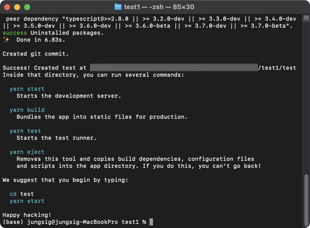 프로젝트가 생성되면 터미널에서 위와 같은 화면을 보실 수 있습니다.