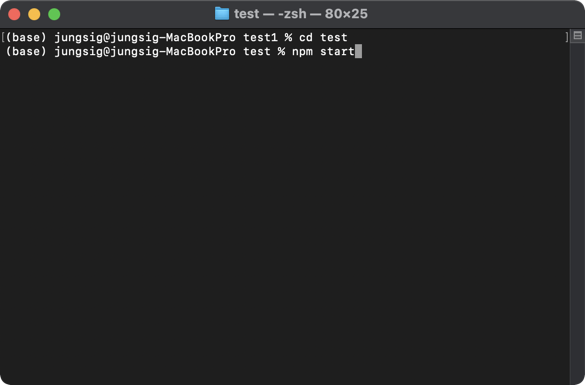 위 명령어를 통해 프로젝트를 실행시킵니다.