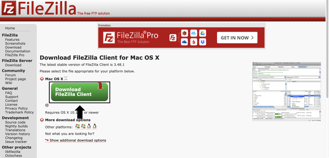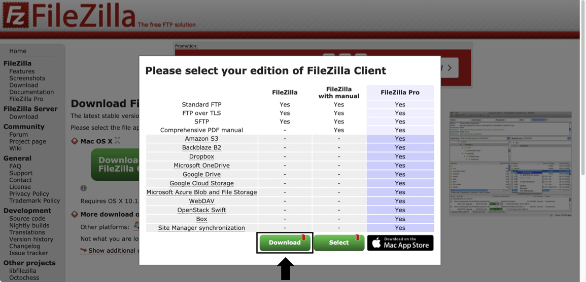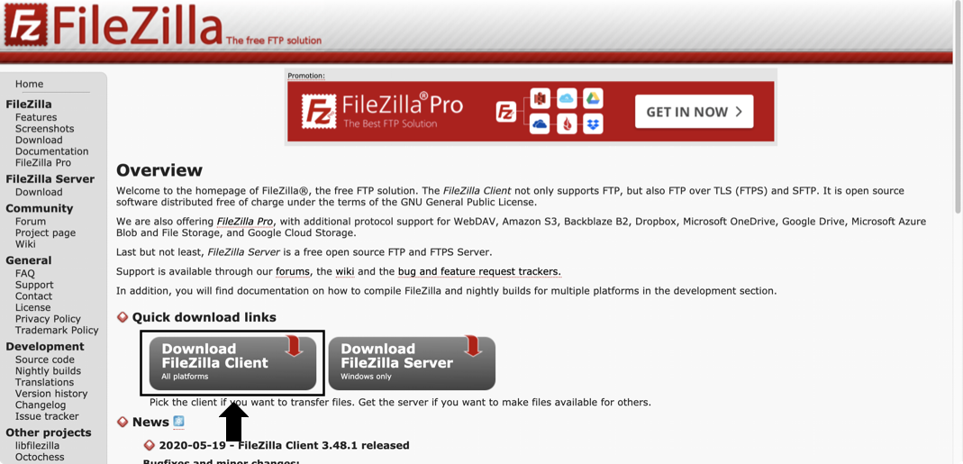 Download FileZilla Client 를 클릭합니다.