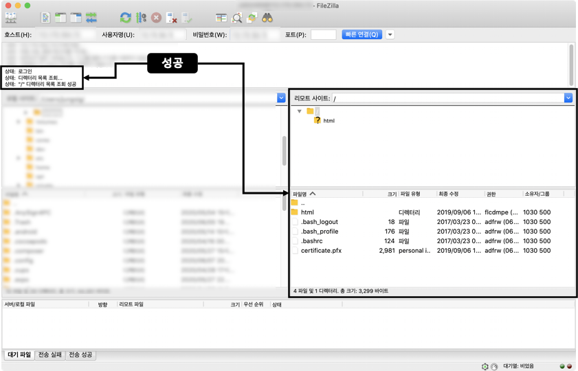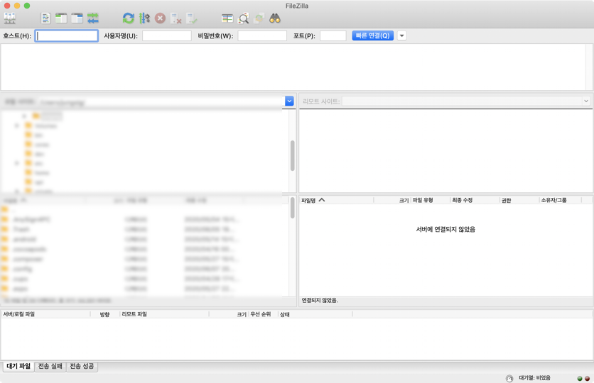 FileZilla가 실행됩니다.