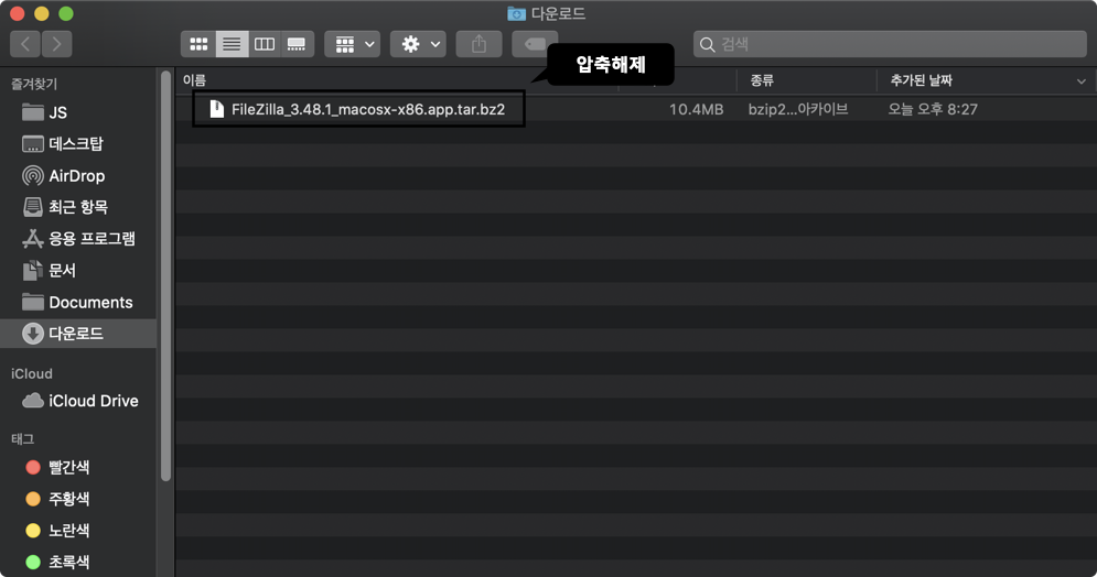 FileZilla 압축파일이 다운로드되고 해당 압축 파일을 더블클릭하여 압축 해제 해주세요.