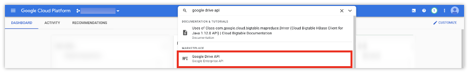 Google Cloud Platform에서 Google Drive API를 검색하여 선택합니다.