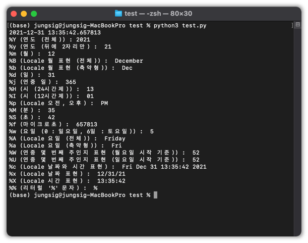 # %c (Locale 날짜와 시간 표현) : Fri Dec 31 13:35:42 2021
