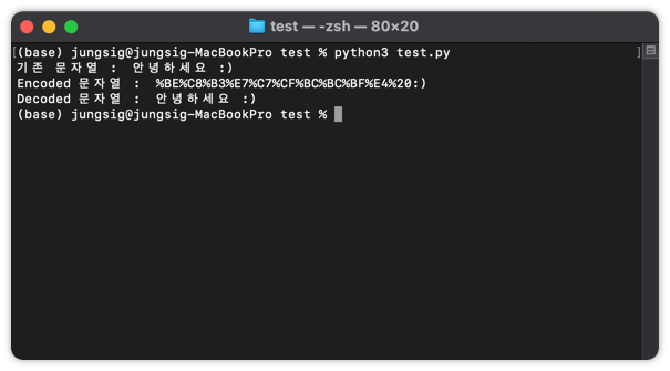 # Decoded 문자열 : 안녕하세요 :)