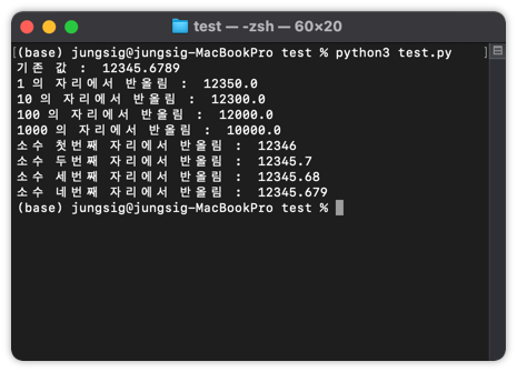 Python에서 round() 를 사용하셔서 반올림을 하신다면 위와같이 사사오입 원칙을 따른다는 것을 명심하셔야 합니다.