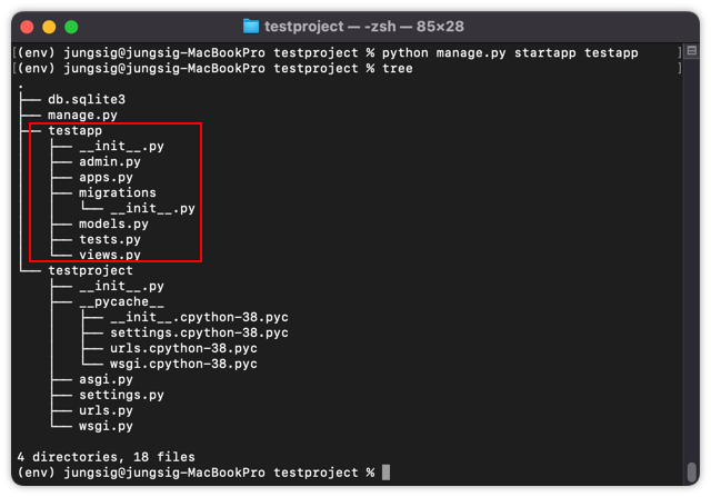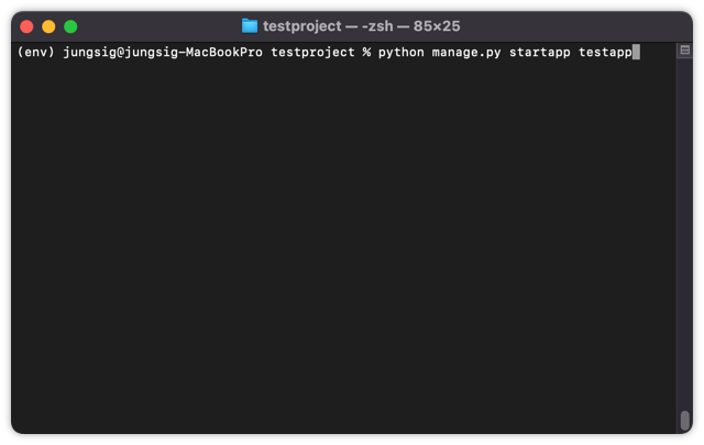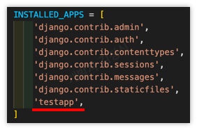 'testapp'은 제가 임의로 설정한 앱 이름으로 원하는 앱의 이름을 입력하시면 되겠습니다.