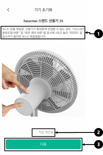 ※참고로 연결이 끝난 후 스마트폰으로 선풍기를 컨트롤할 때 꼭 같은 와이파이에 연결될 필요는 없습니다.