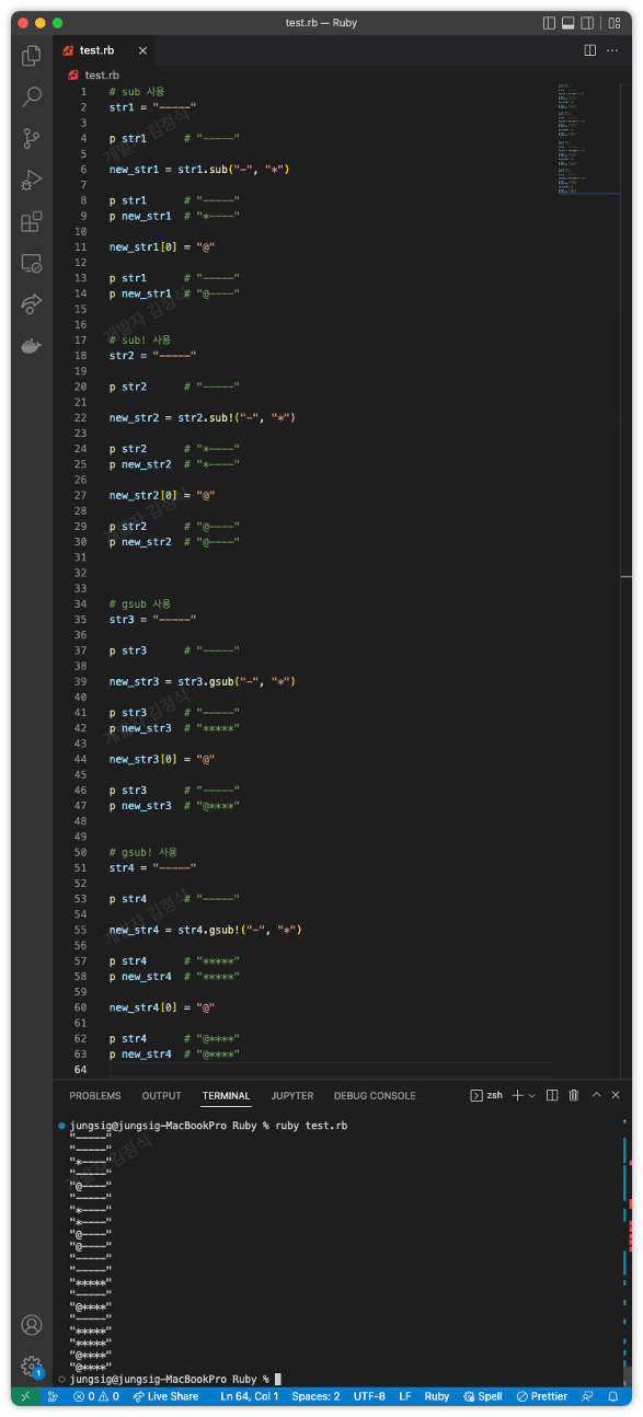 Ruby String sub / gsub / sub! / gsub! 사용 방법 (루비 문자열 치환하는 방법)