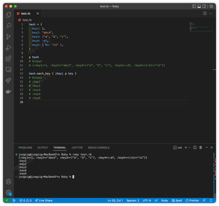 | Ruby Hash 존재하는 모든 키 구하는 방법 - Hash.keys (0) | 2022.09.19 |