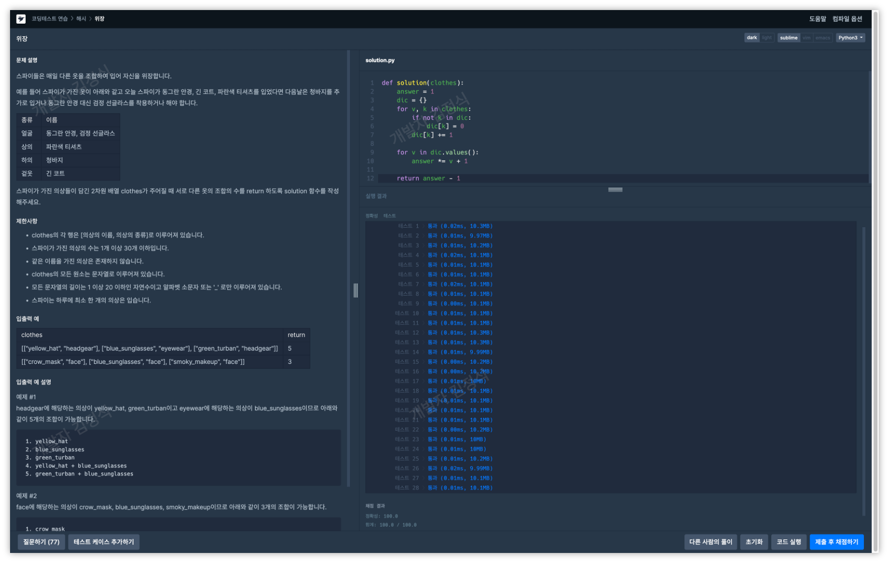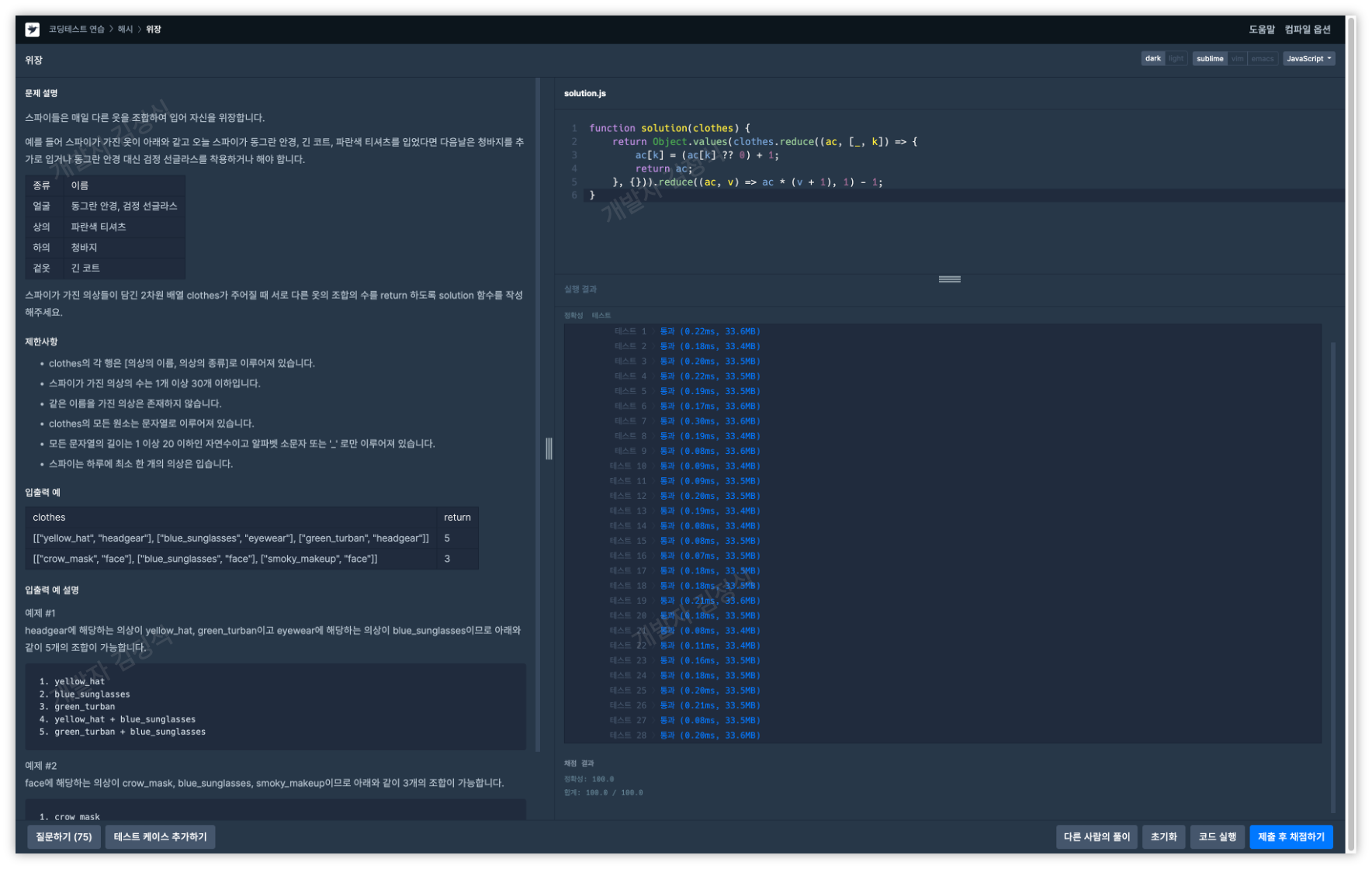 [위장] 문제를 JavaScript 와 Python를 사용하여 해결해 보도록 하겠습니다.
