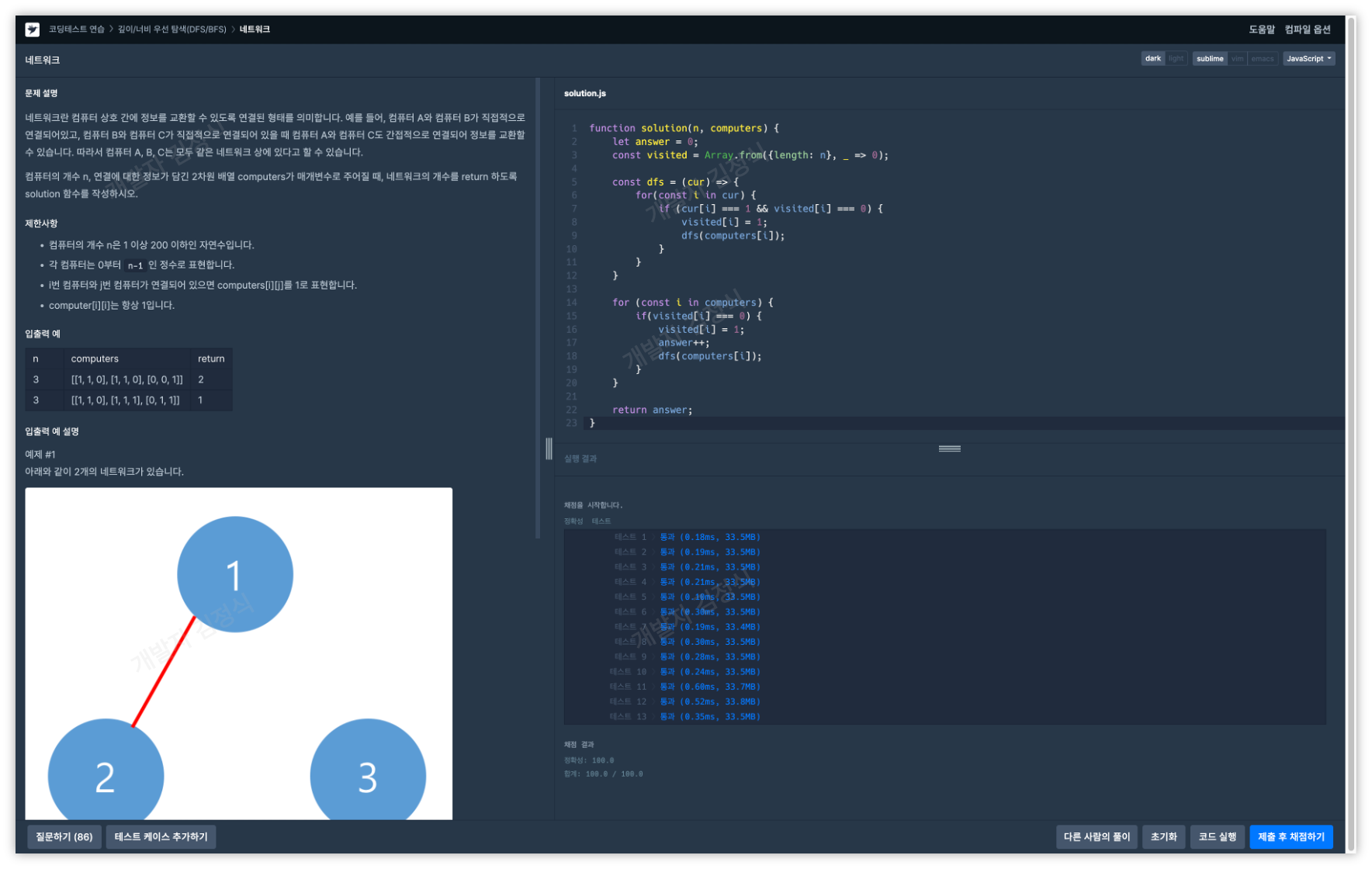 [네트워크] 문제를 JavaScript 와 Python를 사용하여 해결해 보도록 하겠습니다.