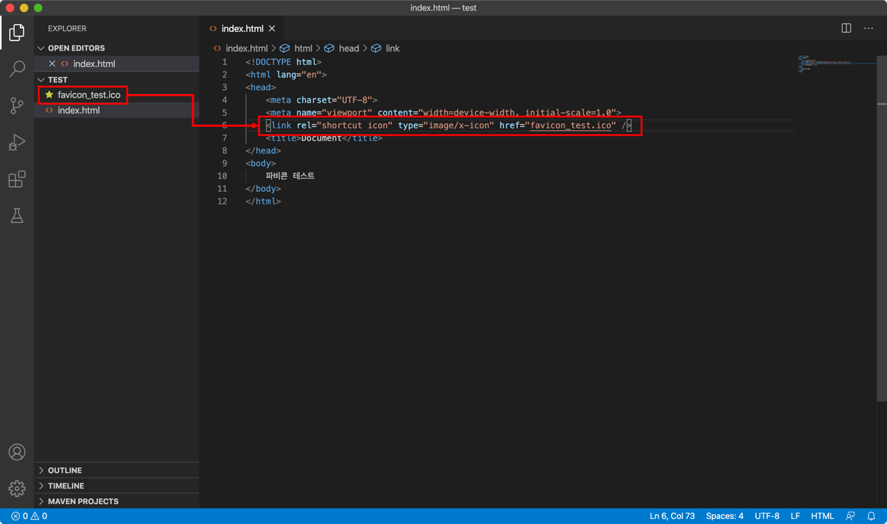 위의 코드를 이용해 파비콘을 설정합니다.