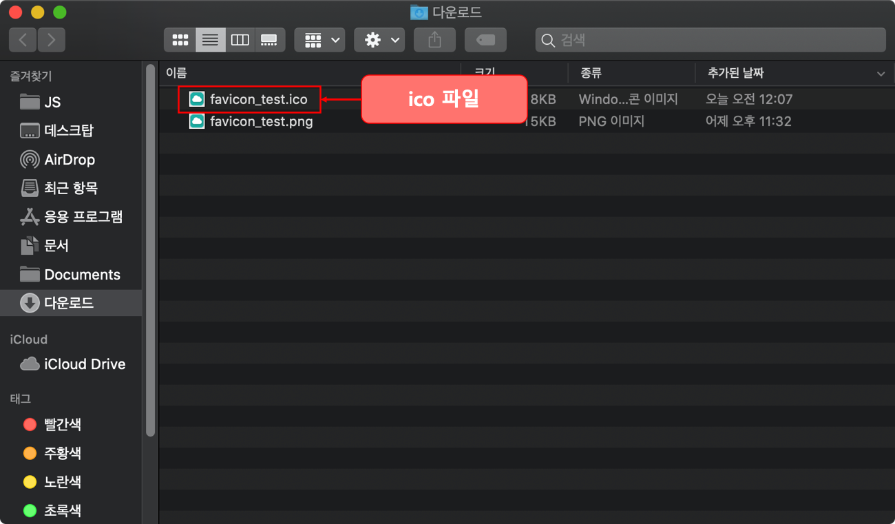 약 5~10초만 기다려주시면 해당부분에 만들어진 ico파일이 나타납니다.