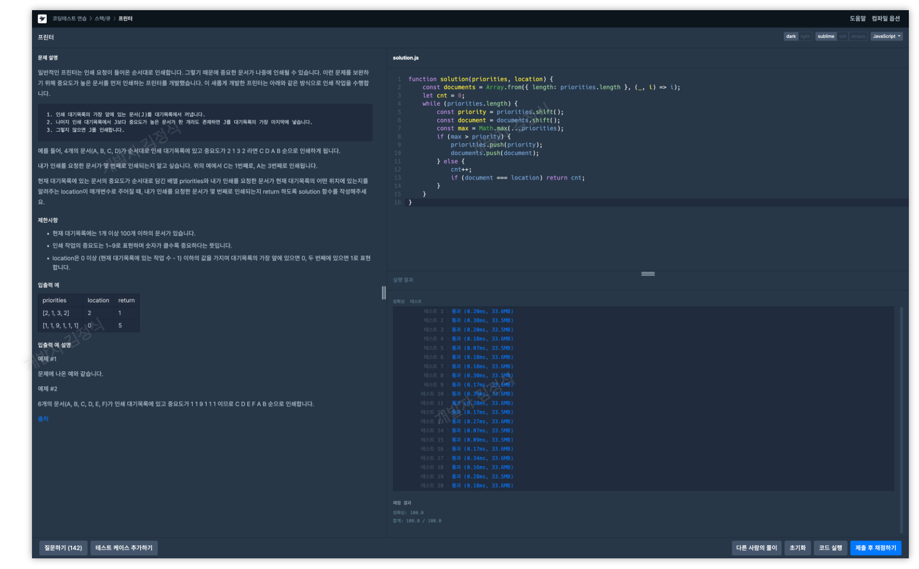 [프린터] 문제를 JavaScript를 사용하여 해결해 보도록 하겠습니다.