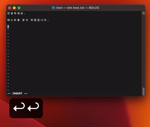 문서를 작성하던 상태에서 [ESC] 키를 통해 일반 모드로 나간 후,