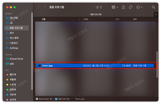 설치가 끝나면 자동으로 응용프로그램에 iTerm.app이 생겨나게 되니 바로 사용하시면 되겠습니다.