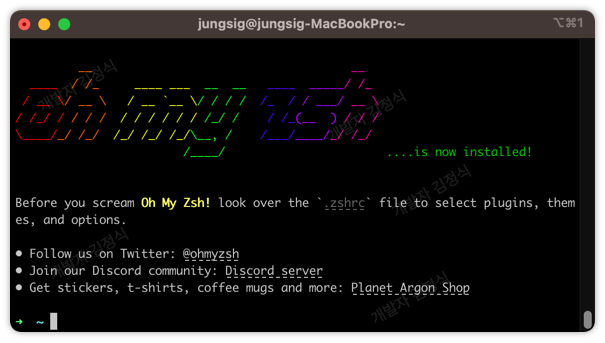 위 명령어를 통하여 oh-my-zsh 를 설치할 수 있습니다.