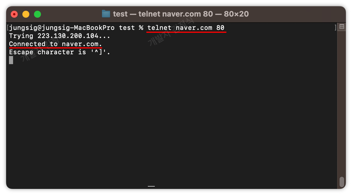 예를 들어 네이버에 80 포트로 접근 가능한지 확인하는 예시로는 위와 같이 확인해볼 수 있겠습니다.
