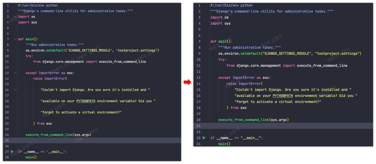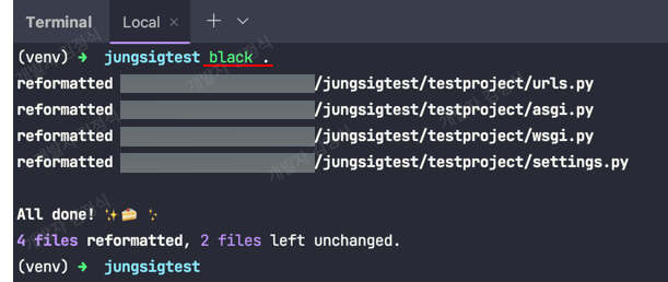 4-2. black 명령어 실행 (PyCharm과 관계없이 black 설치만 해도 사용가능함)