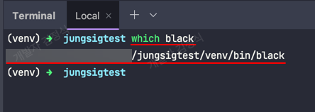 위 명령어를 통해 black의 경로를 출력하고, 해당 경로를 복사해둡니다.