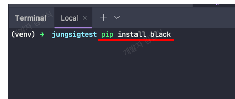 먼저 위 명령어를 통해 black 패키지를 설치합니다.