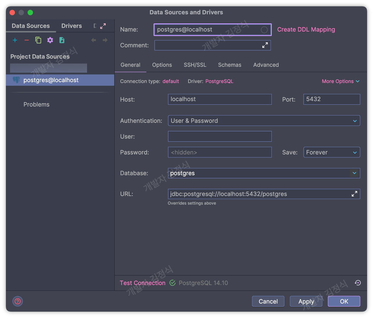 DataGrip 에 로컬 PostgreSQL 연결하는 방법