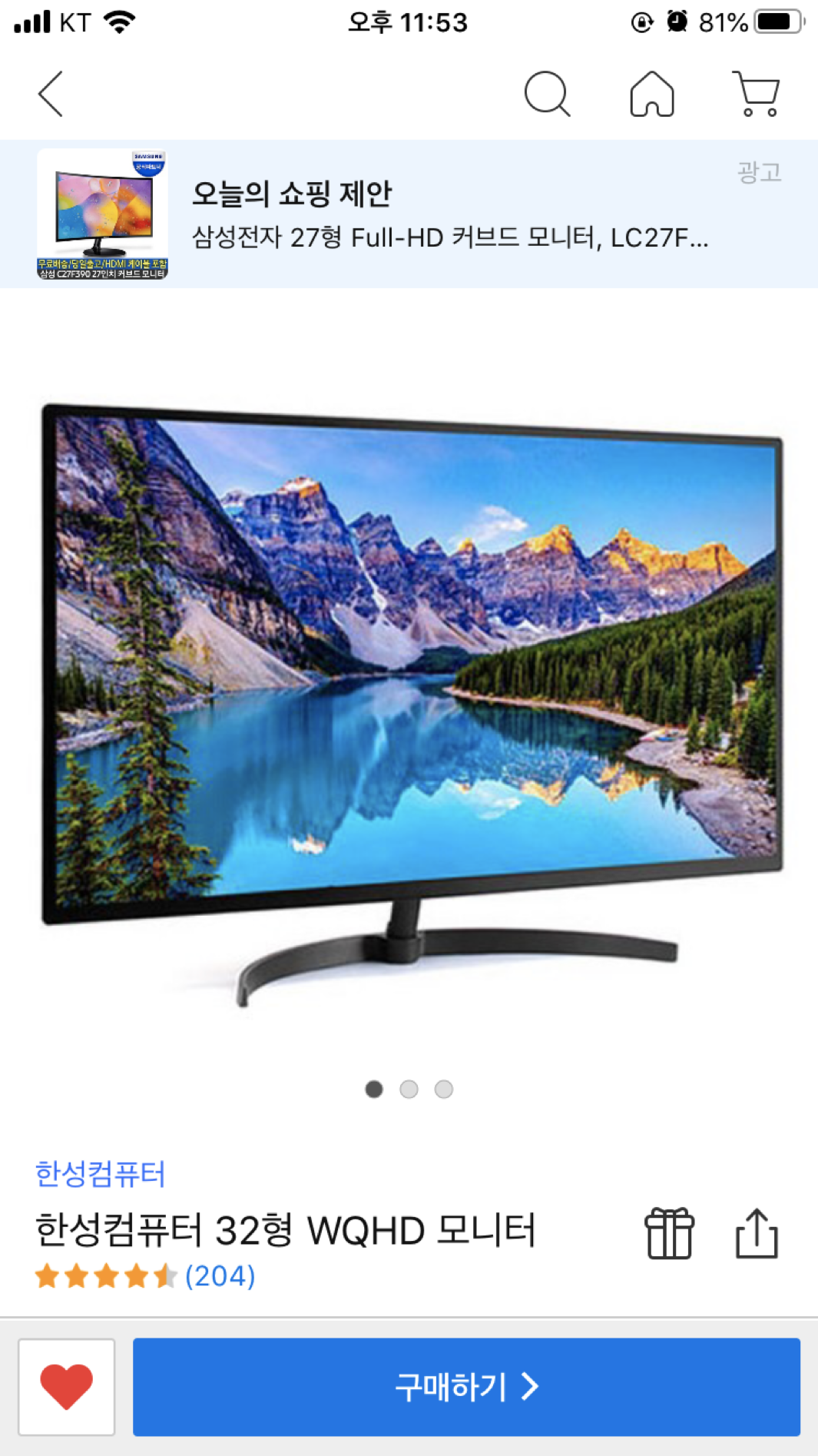 찜 해놓고 다른 모니터들도 찾아보다가 결국 이 제품을 사려고 마음먹고 돌아와보니
