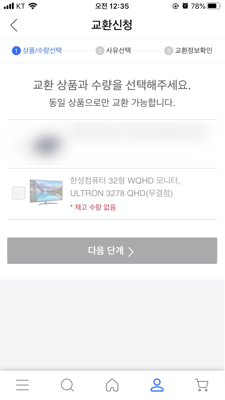 재고 수량 없음 으로 뜨면서 교환신청이 되질 않습니다.
