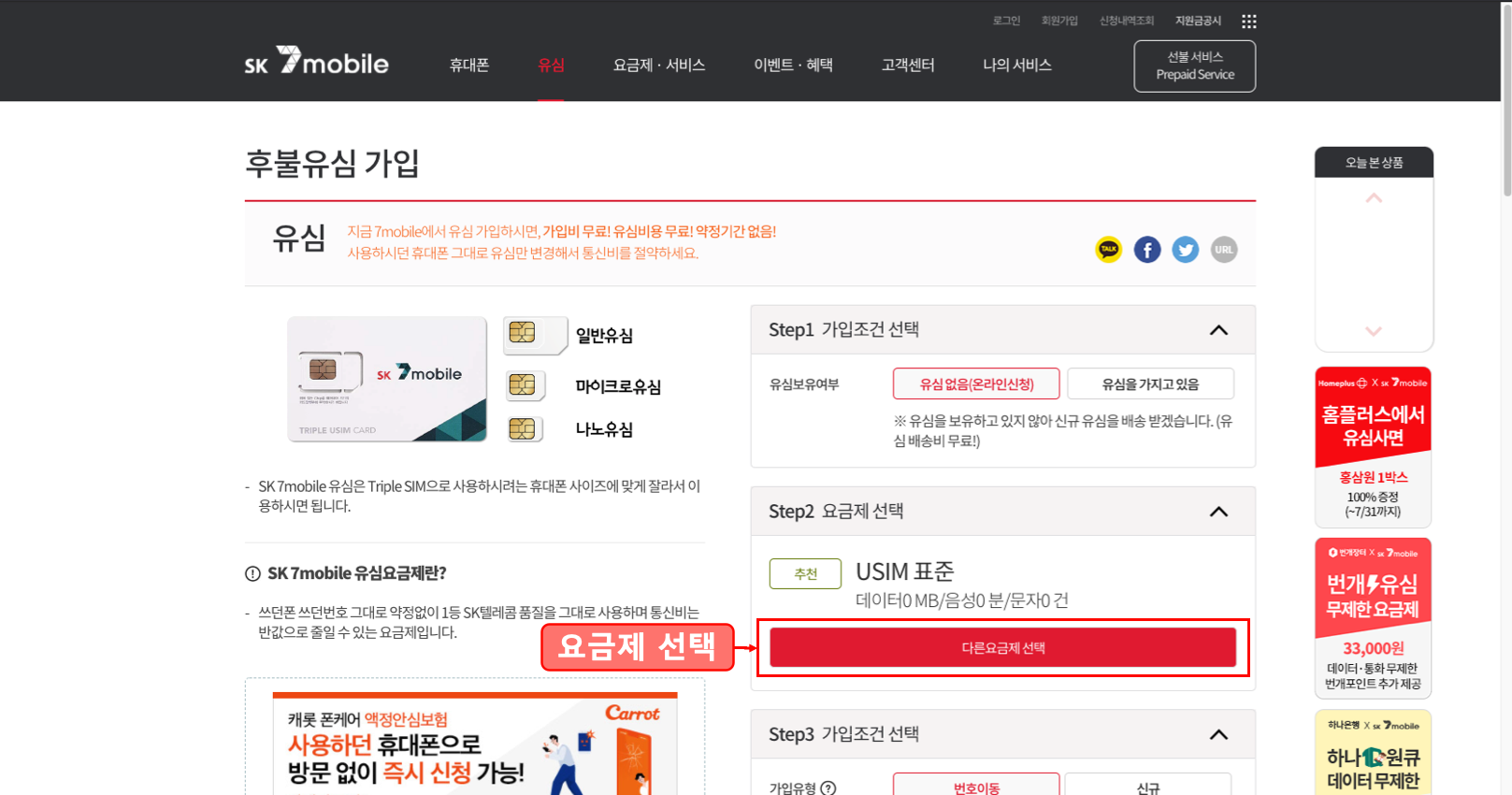 Step 2 요금제 선택은 미리 했고,