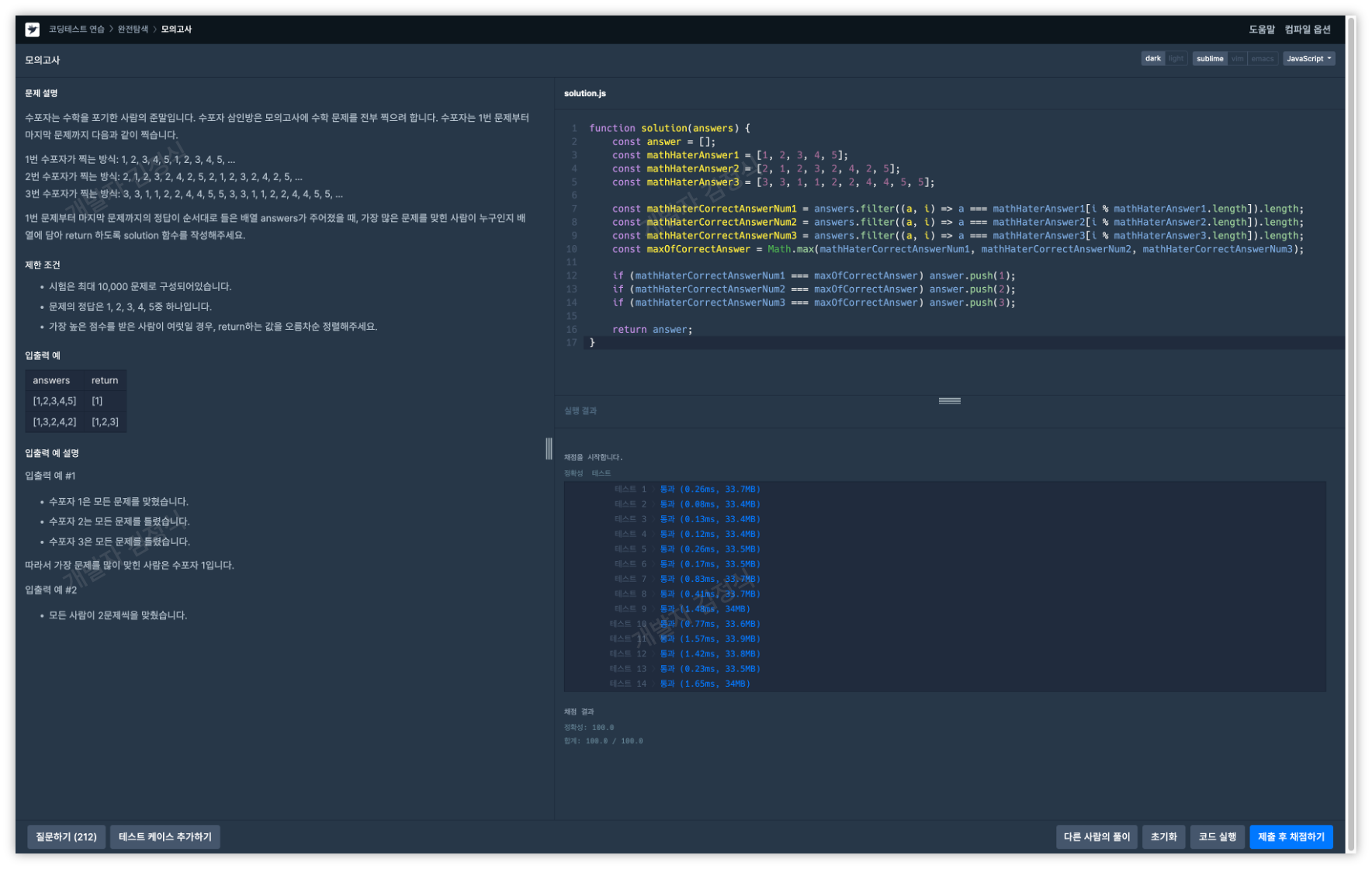 [모의고사] 문제를 JavaScript로 풀어보도록 하겠습니다.