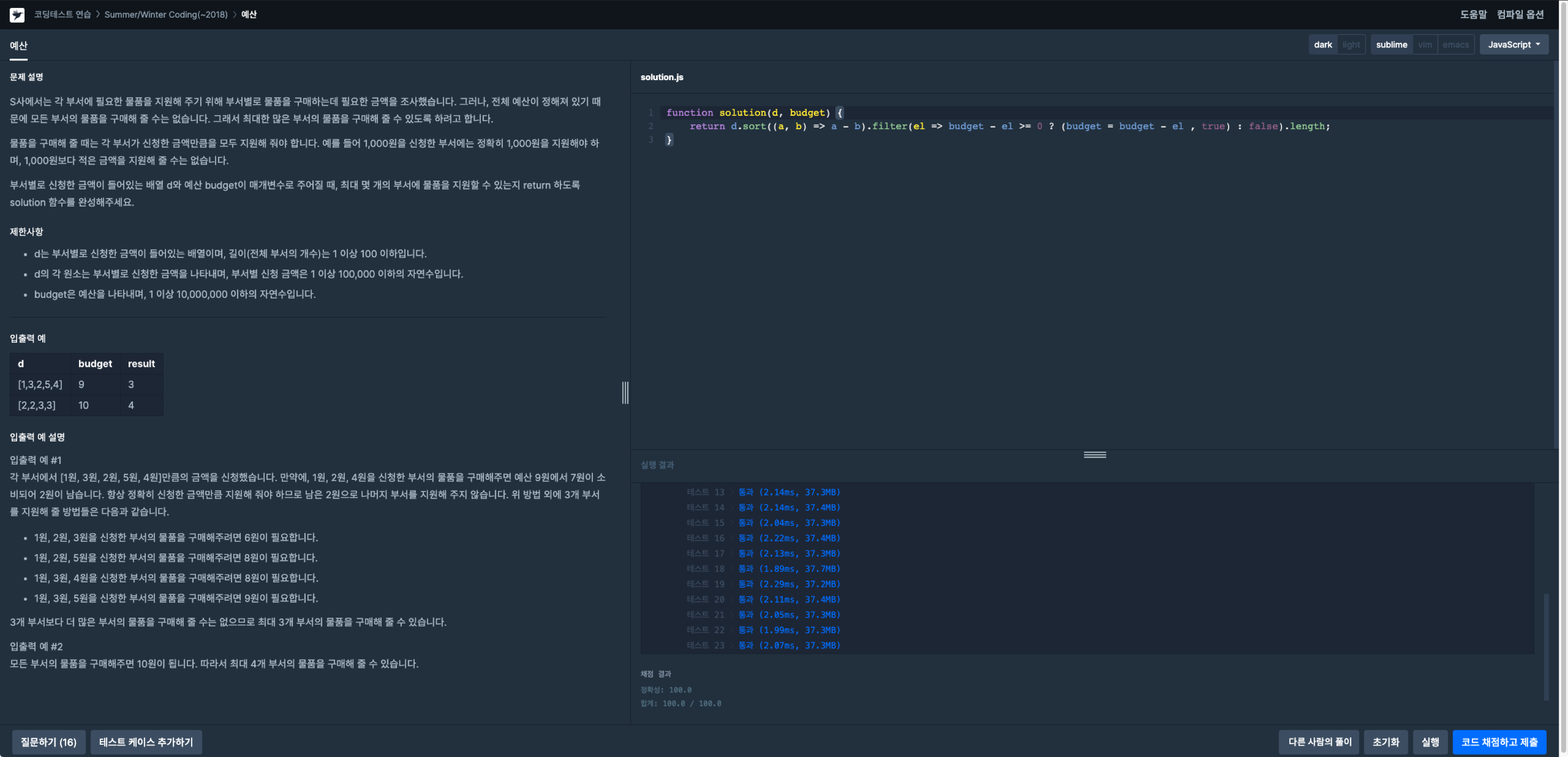 예산 문제를 JavaScript로 풀어보도록 하겠습니다.