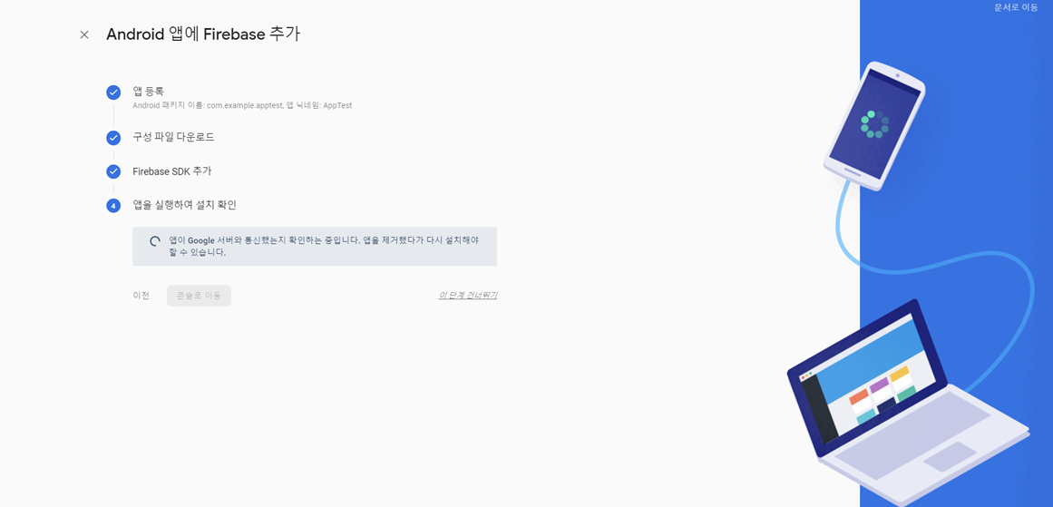 위와 같이 앱이 Google 서버와 통신했는지 확인하는 중이라는 문구를 보실 수 있고 조금 기다리시면