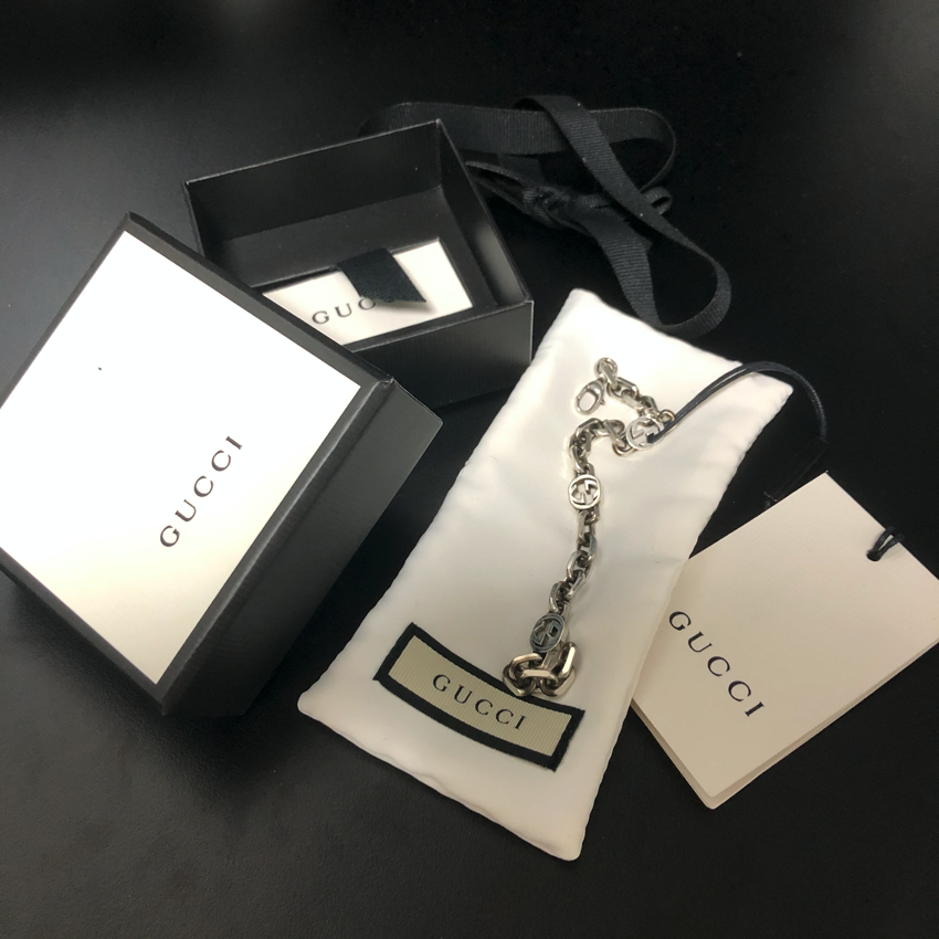 구찌 인터로킹 G 디테일의 실버 팔찌(스타일 번호 : 620798 J8400 0811), 20 S/S 컬렉션, 925 빈티지 마감 스털링 실버 소재의 팔찌입니다.