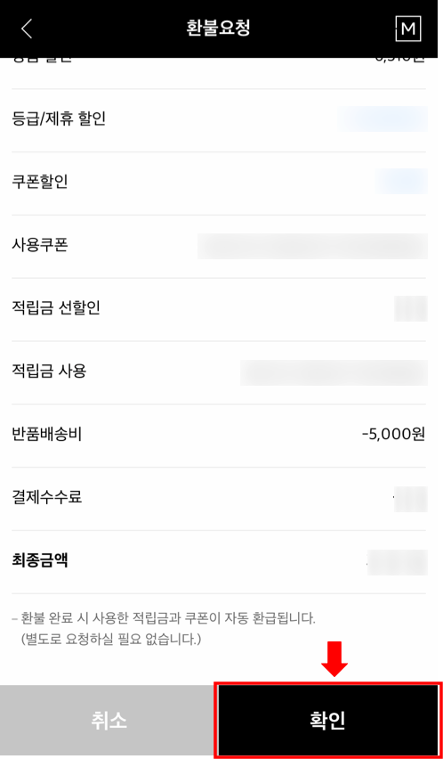 그럼 알아서 환불될 때 깔끔하게 5000원 차감하고 환불됩니다!